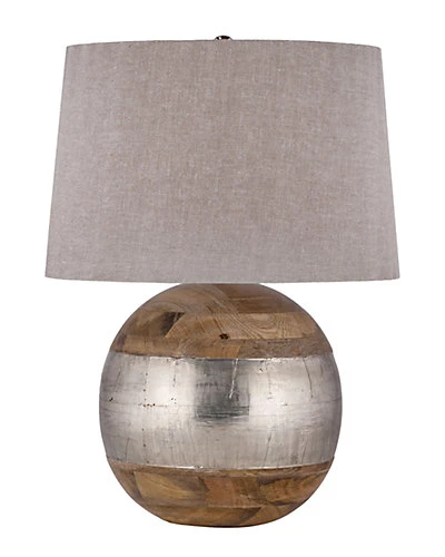 - Design details: handcrafted, mango wood and German silver base, linen shade, requires 1-150W Med. Bulbs (not included)