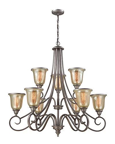 - Design details: made of metal, glass; hand-crafted; requires 9 100-watt bulbs, not included